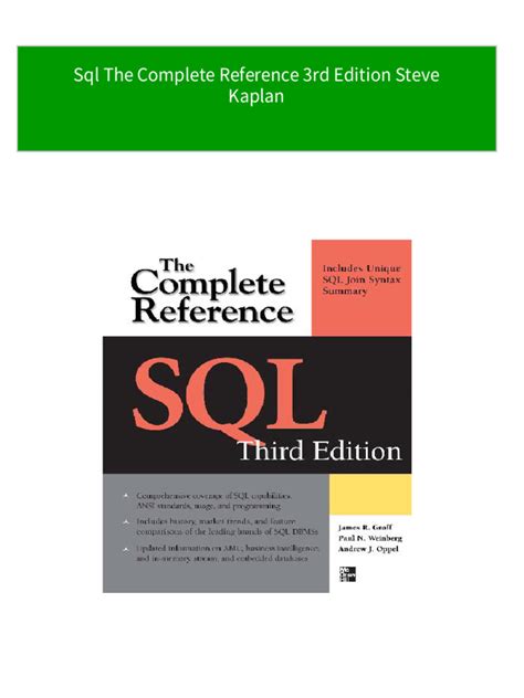 GMY - Read DataBases - SQL - The Complete Reference mobipocket ManyBooks
